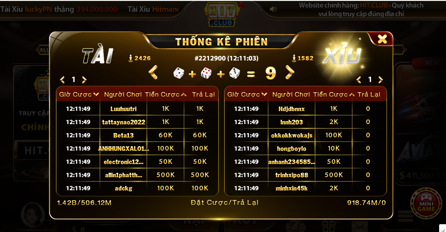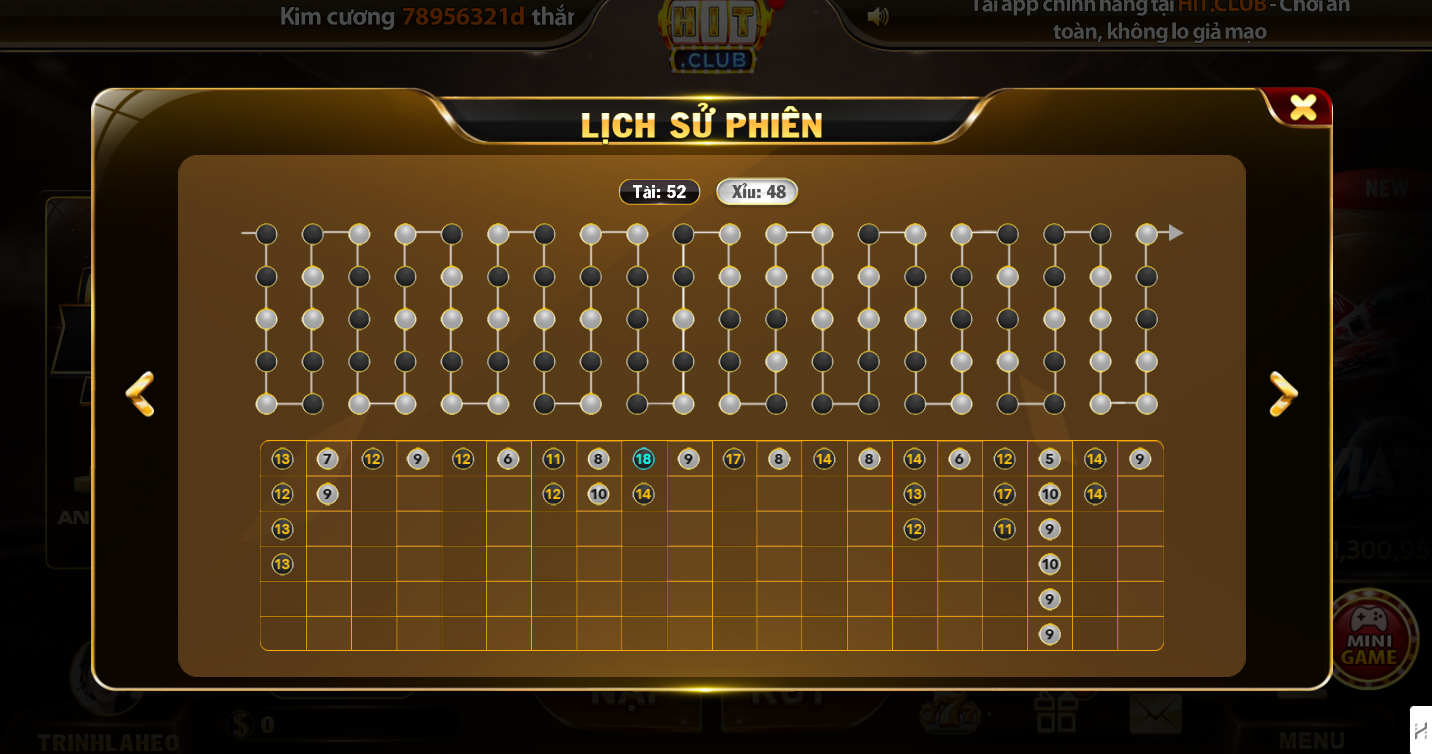 Lưu ý: Tỷ lệ trả thưởng khi đặt cửa Tài hoặc cửa Xỉu là 1 ăn 1.98 (đã bao gồm tiền cược). Doanh nghiệp Hit Club có quyền hủy kết quả cược nếu phát hiện gian lận, rửa tiền, hoạt động gian dối hoặc hệ thống xảy ra sự cố phần mềm dẫn đến sai tỷ lệ trả thưởng.